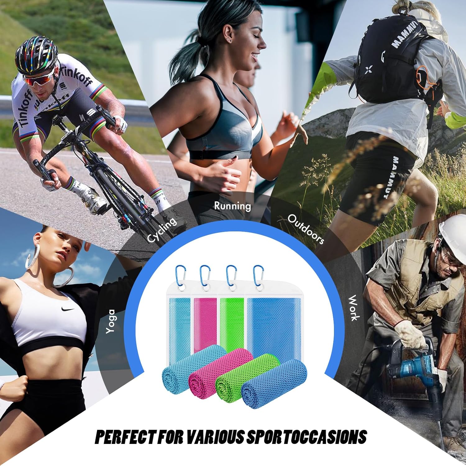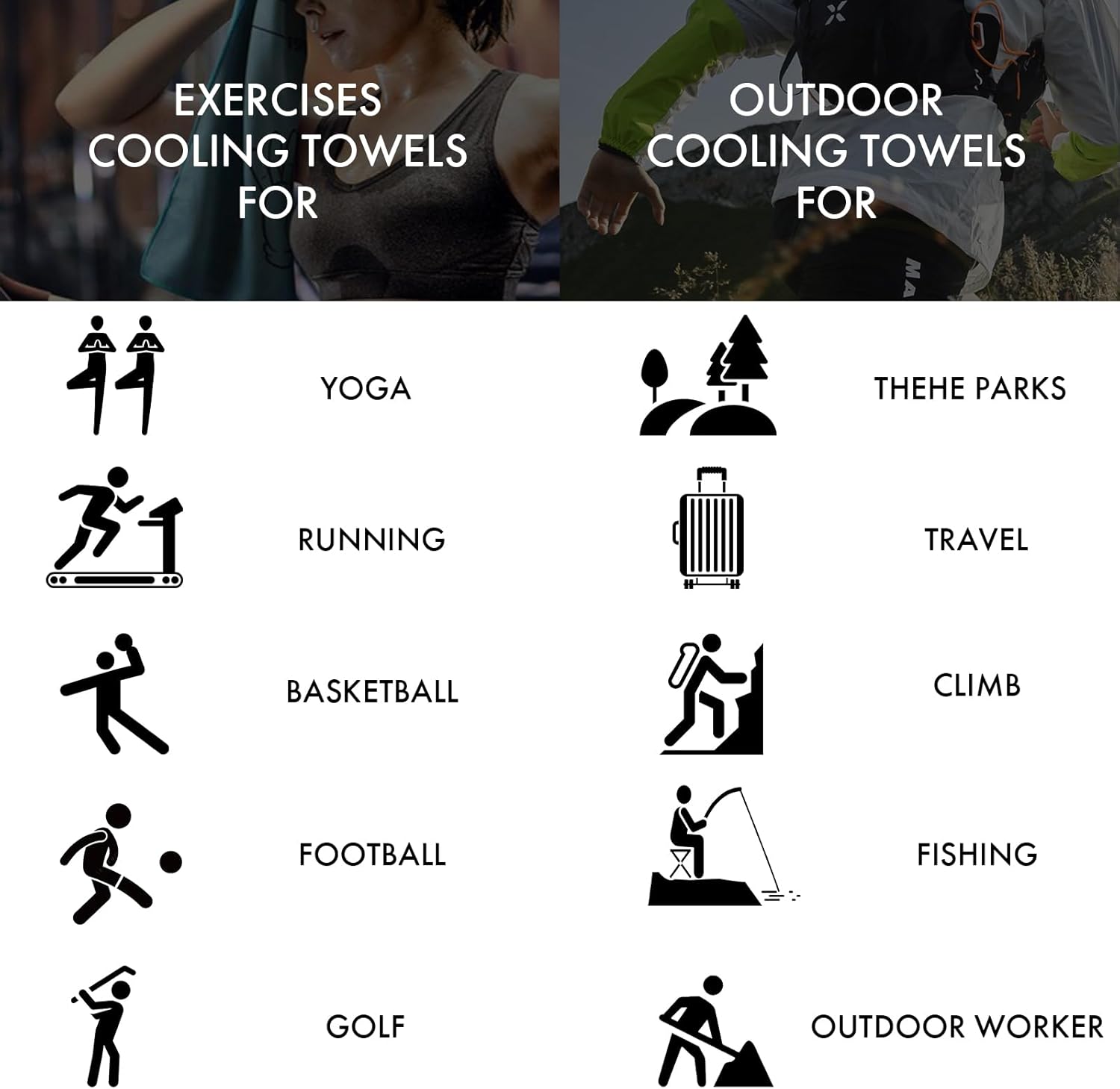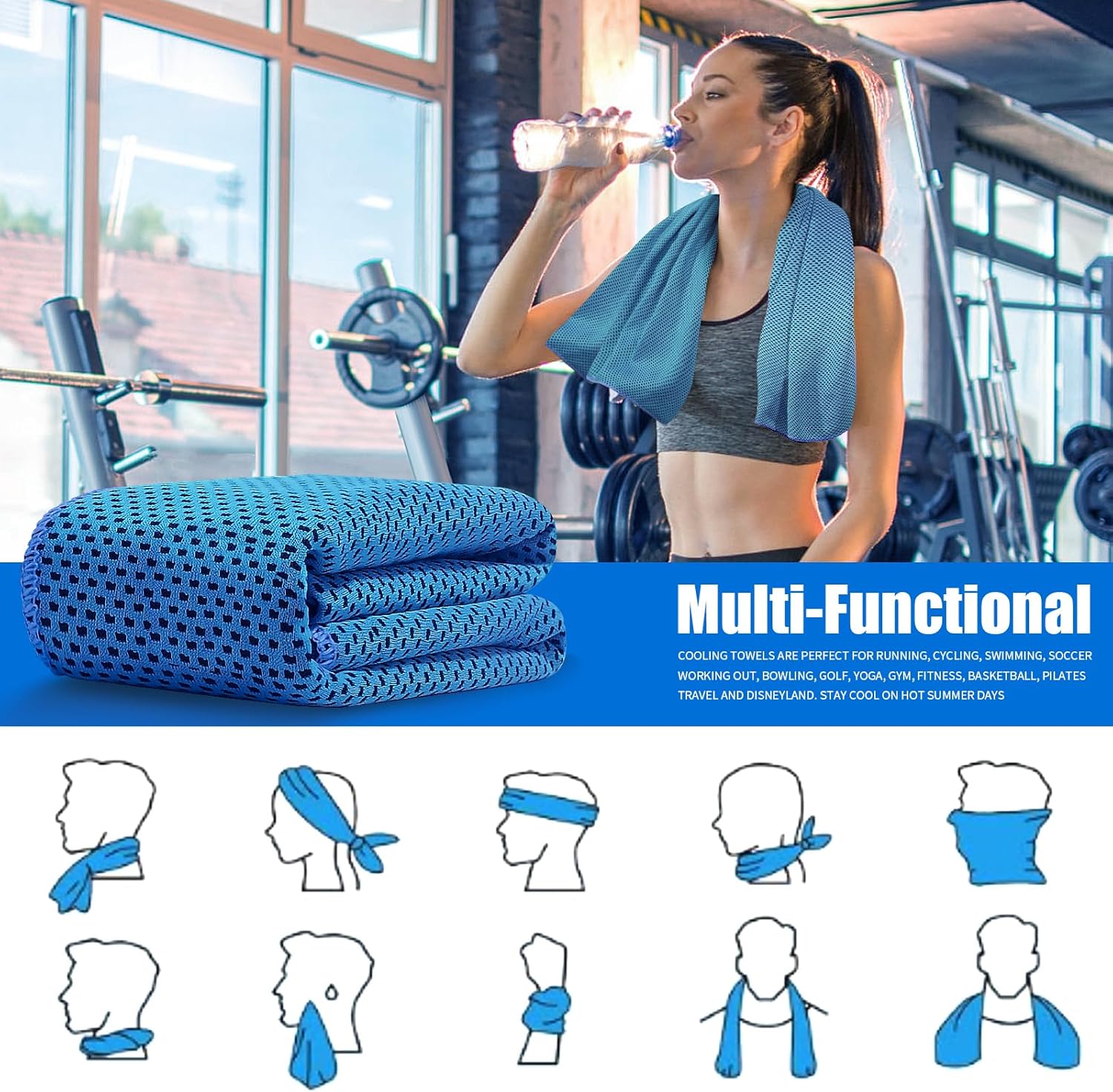 MULTIPURPOSAL:Cooling towels for sports are perfect for running, cycling, swimming, soccer, working out, bowling, golf, yoga, gym, fitness, basketball, Pilates, travel and Disneyland. Stay cool in summer