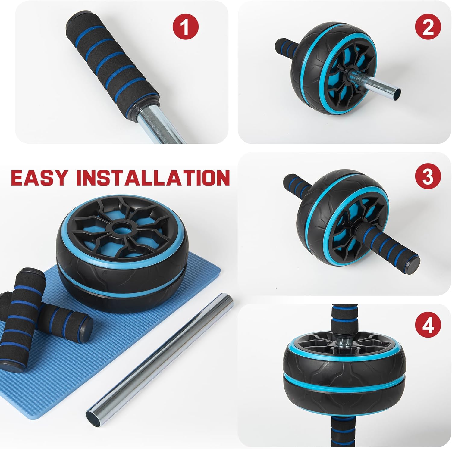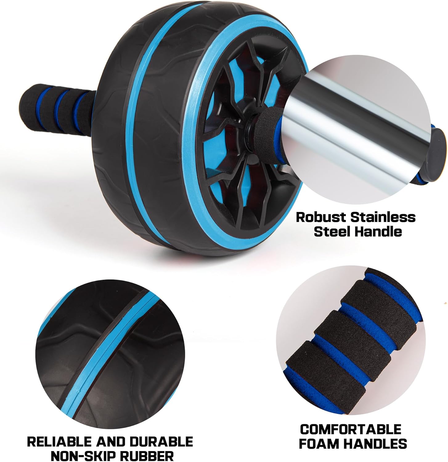 【Wider Abs Wheel & Super Stability】The ab rollers are made of enlarged anti-skid wheels and high-density foam, solid force to show super balance and stability, to ensure that the workout will not be safe and not shaky