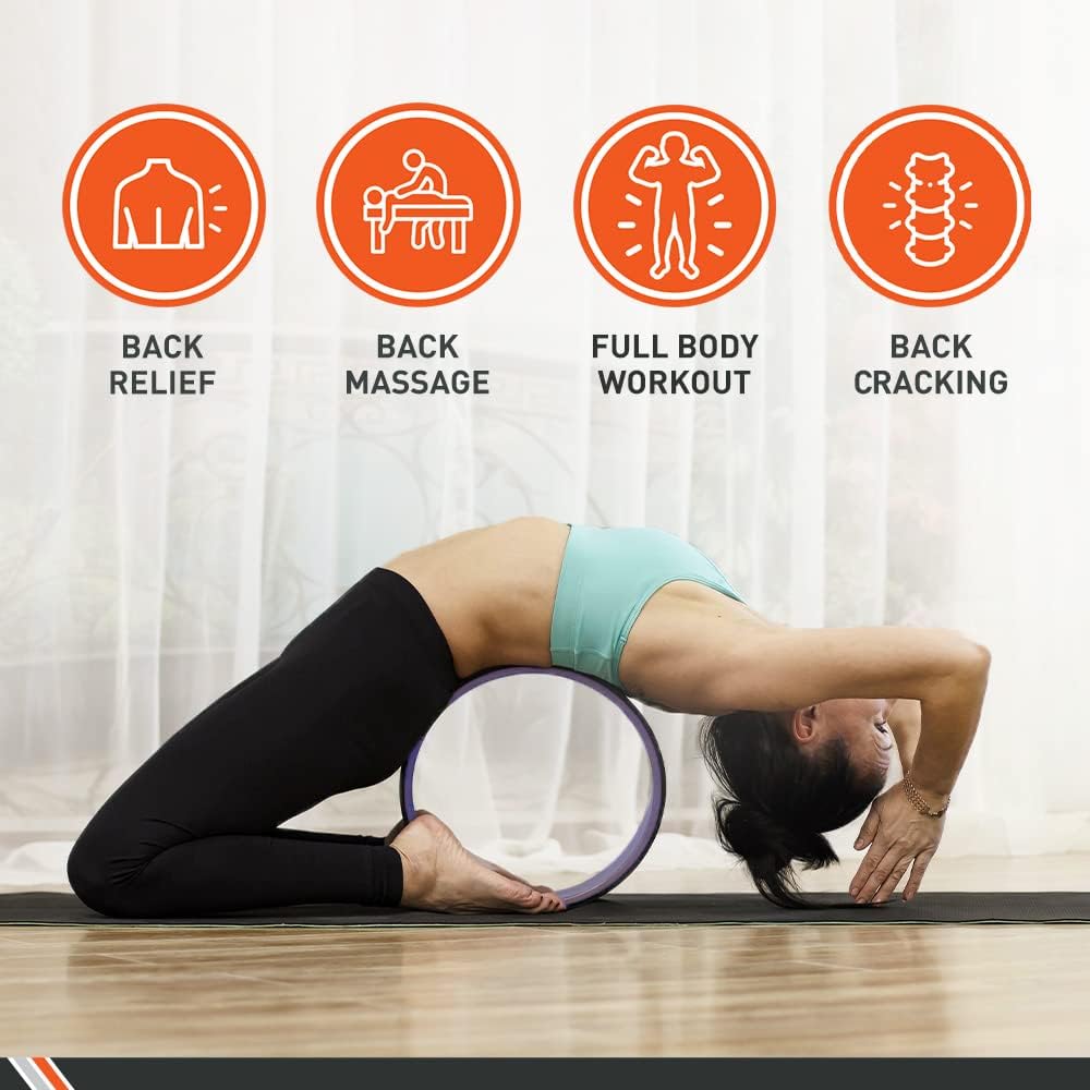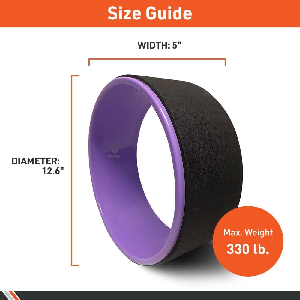 Body Sport Yoga Wheel, 5 in. x 12.6 in. – Cushioned Back Roller & Support Aid for Stretching, Flexibility, for Home Fitness & Gym (Purple)