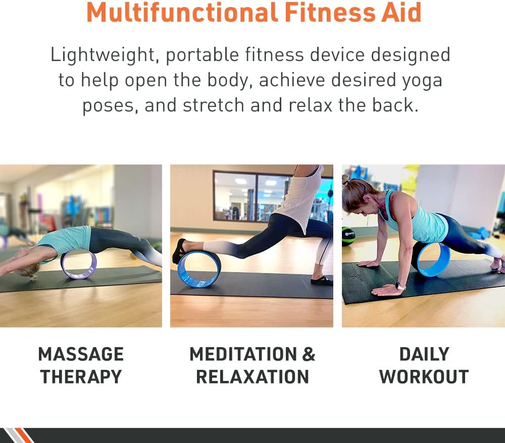 VERSATILE AID. The Body Sport Yoga Wheel is a lightweight, portable fitness device designed to help open the body, achieve desired yoga poses, and stretch and relax the back, shoulders, spine, hips, chest, and abdomen