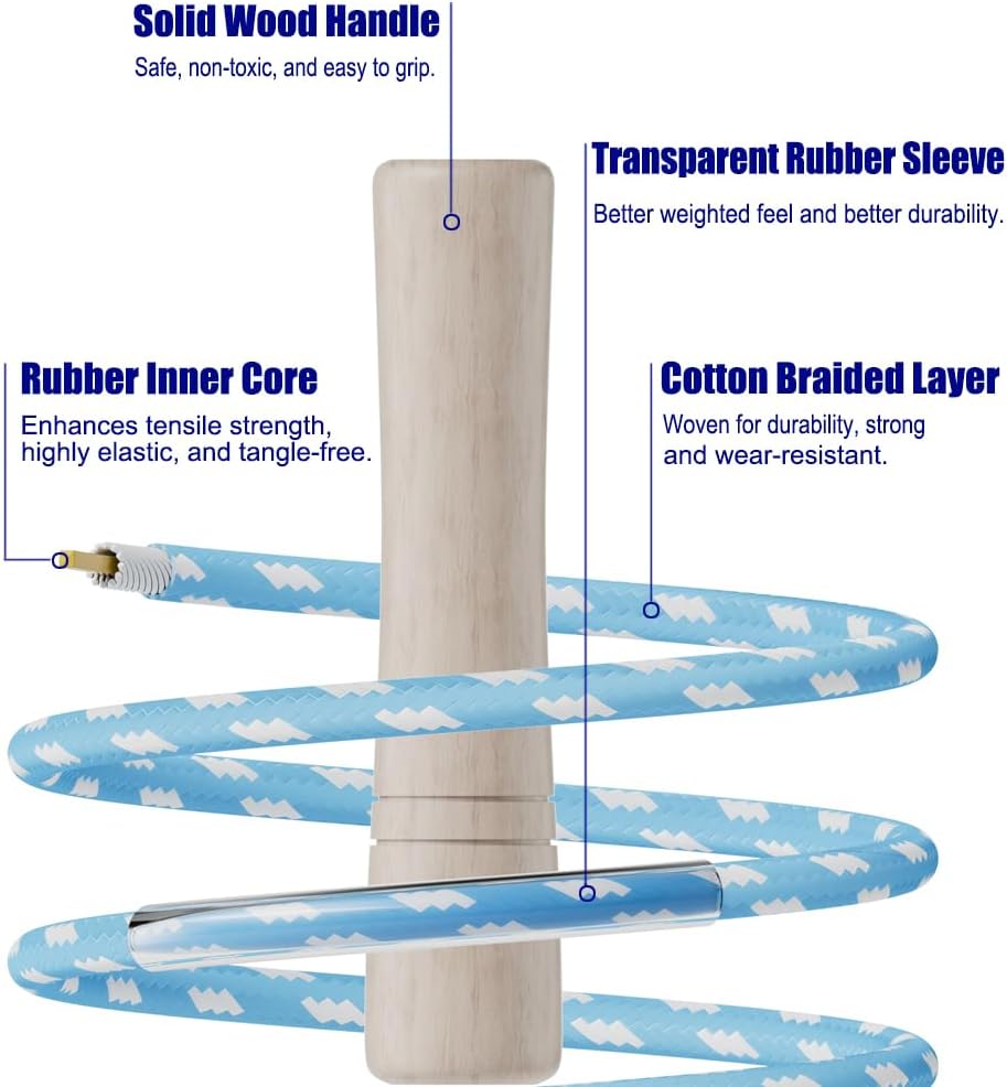 High-Quality & Safe Design – Crafted with non-toxic, odorless wooden handles, the smooth, 3.9-inch grips are designed to fit comfortably in kids’ hands. The lightweight cotton-braided rope is durable, tangle-free, and gentle—leaving no harsh whip marks.