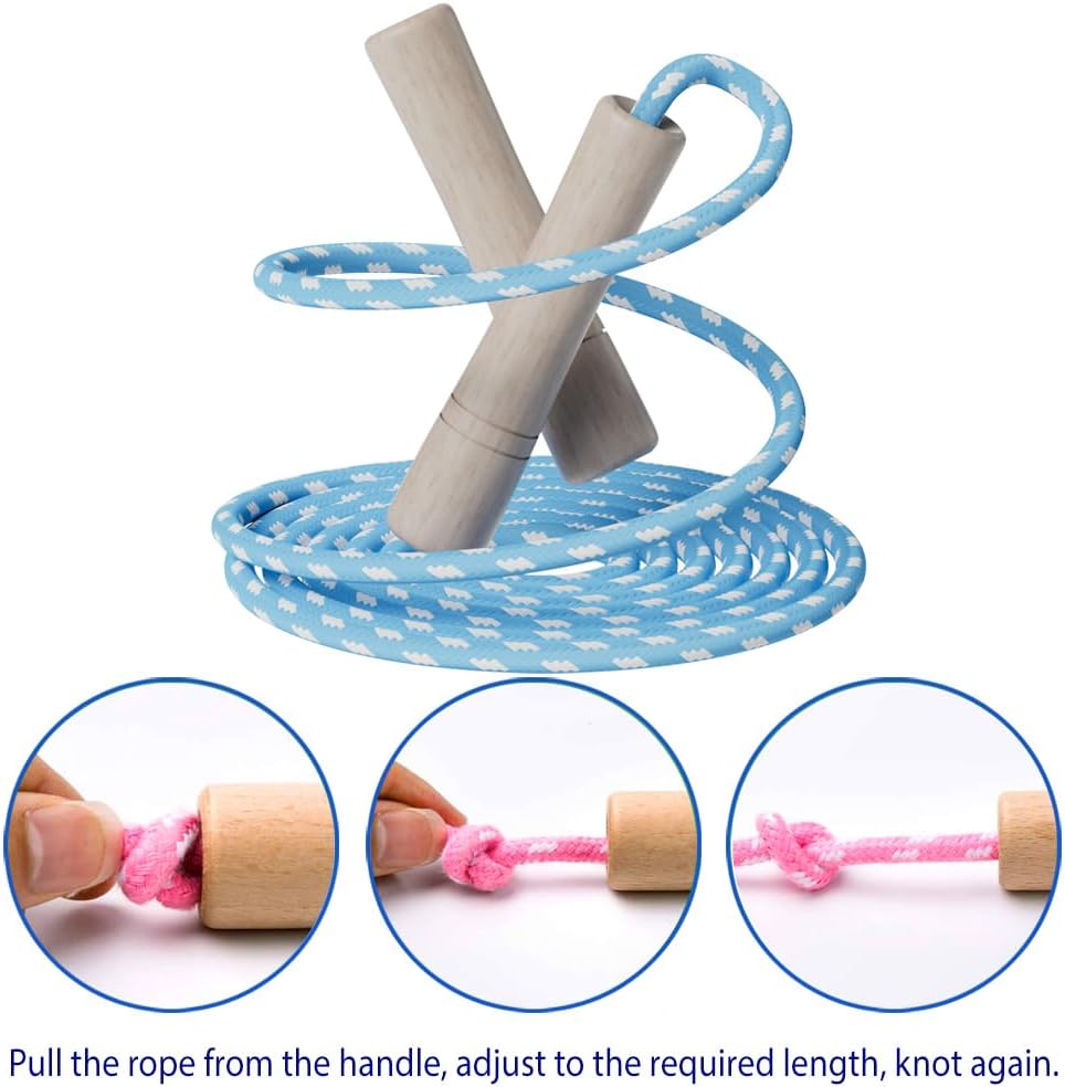 Cotton Jump Rope for Kids – Wooden Handle – Adjustable Cotton Braided Fitness Skipping Rope – Outdoor Fun Activity, Great Party Favor, Exercise Activity, Pack of 2