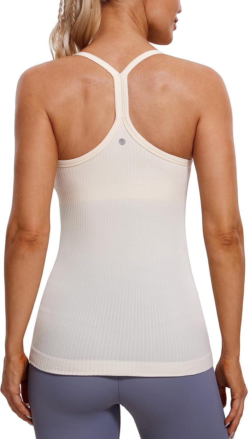 CRZ YOGA Seamless Workout Tank Tops for Women Racerback Athletic Camisole Sports Shirts with Built in Bra
