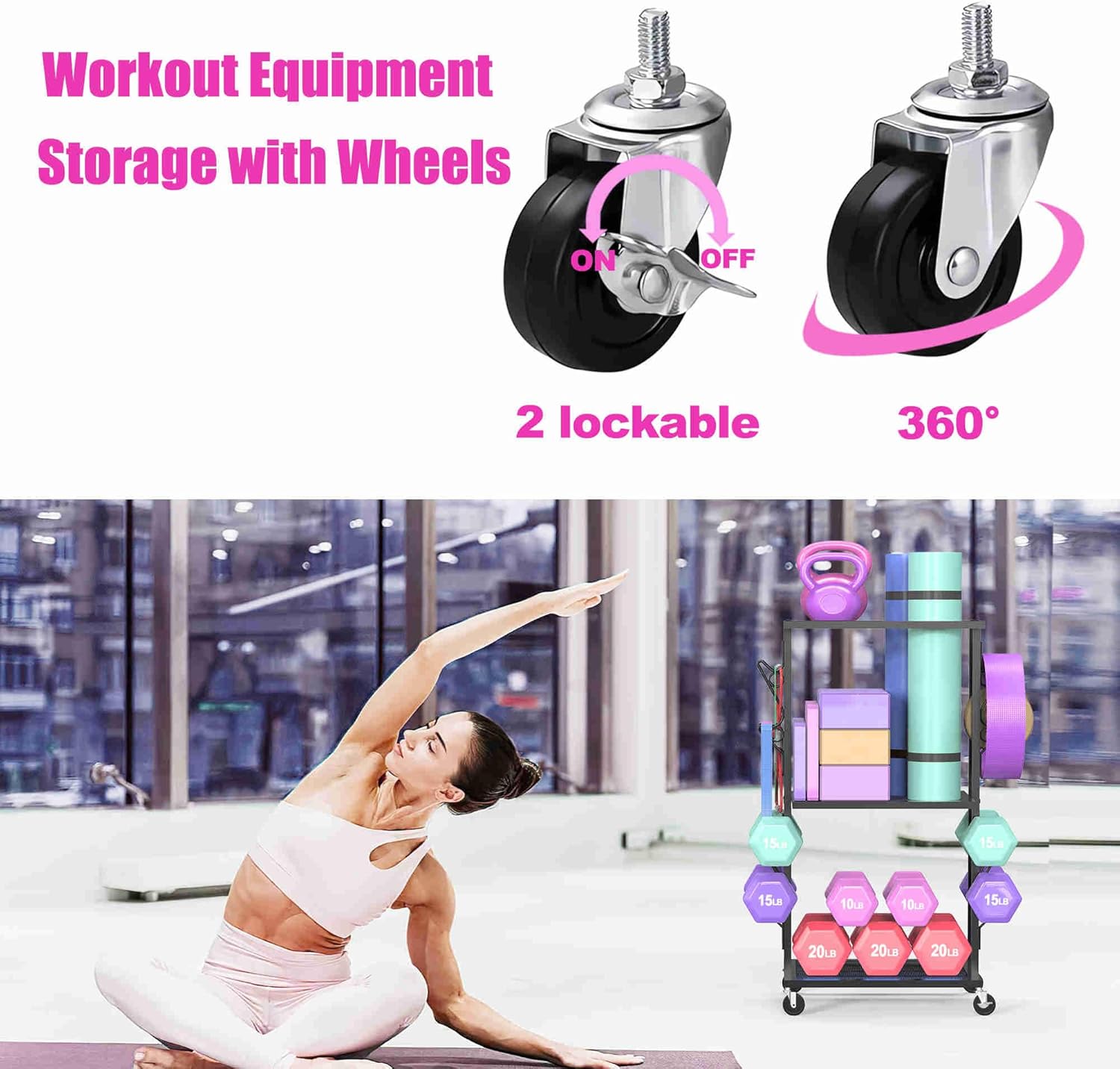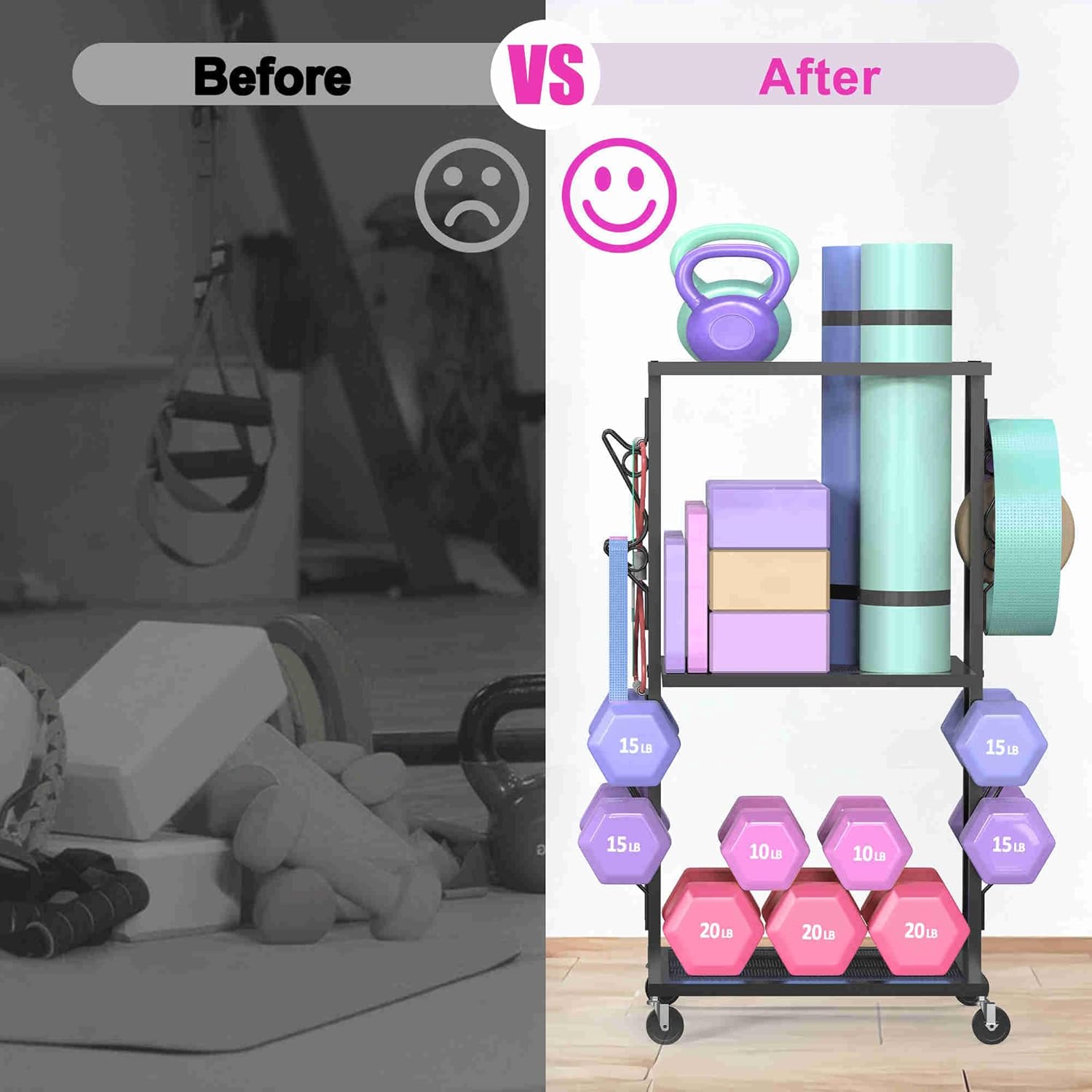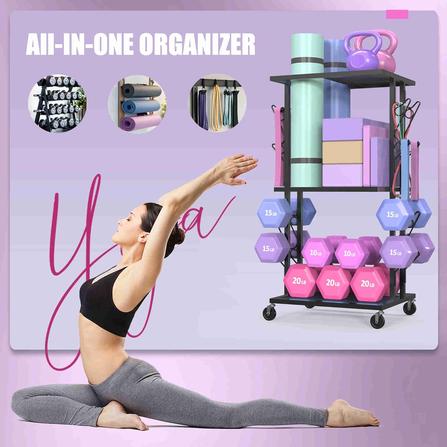 Dumbbell Rack Weight Rack for Home Gym Yoga Mat Storage Workout Equipment Organizer with Wheels