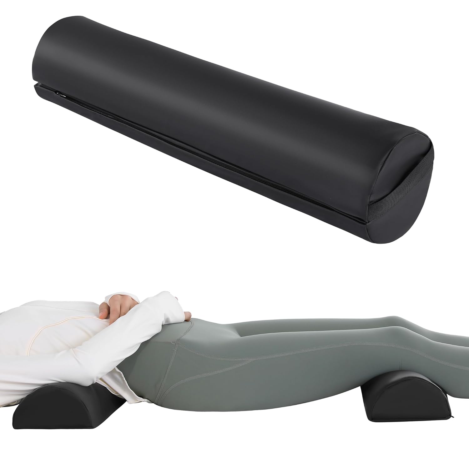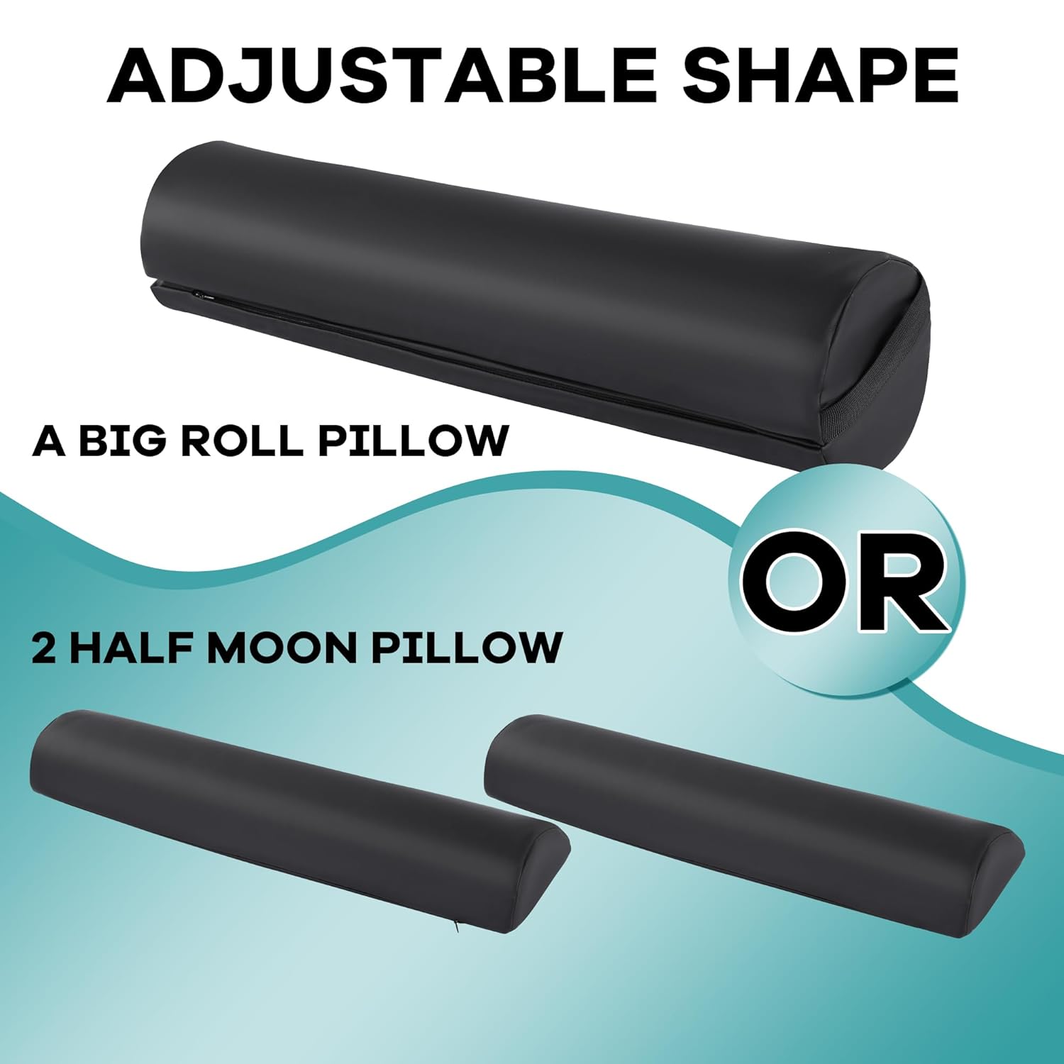 HOMBYS Massage Bolster Pillow Full Round Pillow Can Adjust Into 2 Half Moon Pillows, PU Leather Fabric Waterproof, for Massage and Yoga, Under Leg Pillow, Lumber And Neck Pillow