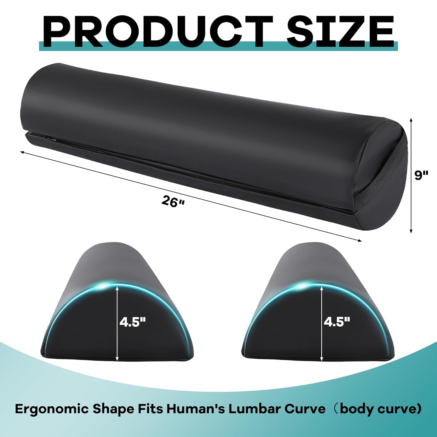 HOMBYS Massage Bolster Pillow Full Round Pillow Can Adjust Into 2 Half Moon Pillows, PU Leather Fabric Waterproof, for Massage and Yoga, Under Leg Pillow, Lumber and Neck Pillow-9inx26in