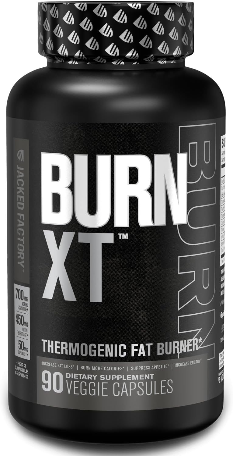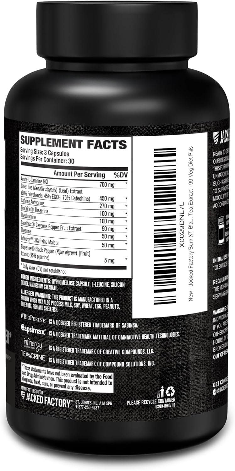 Jacked Factory Burn XT Black Thermogenic Fat Burner – Weight Loss Supplement, Appetite Suppressant, Nootropic Energy Booster | TeaCrine, Acetyl L-Carnitine, Green Tea Extract – 90 Veg Diet Pills