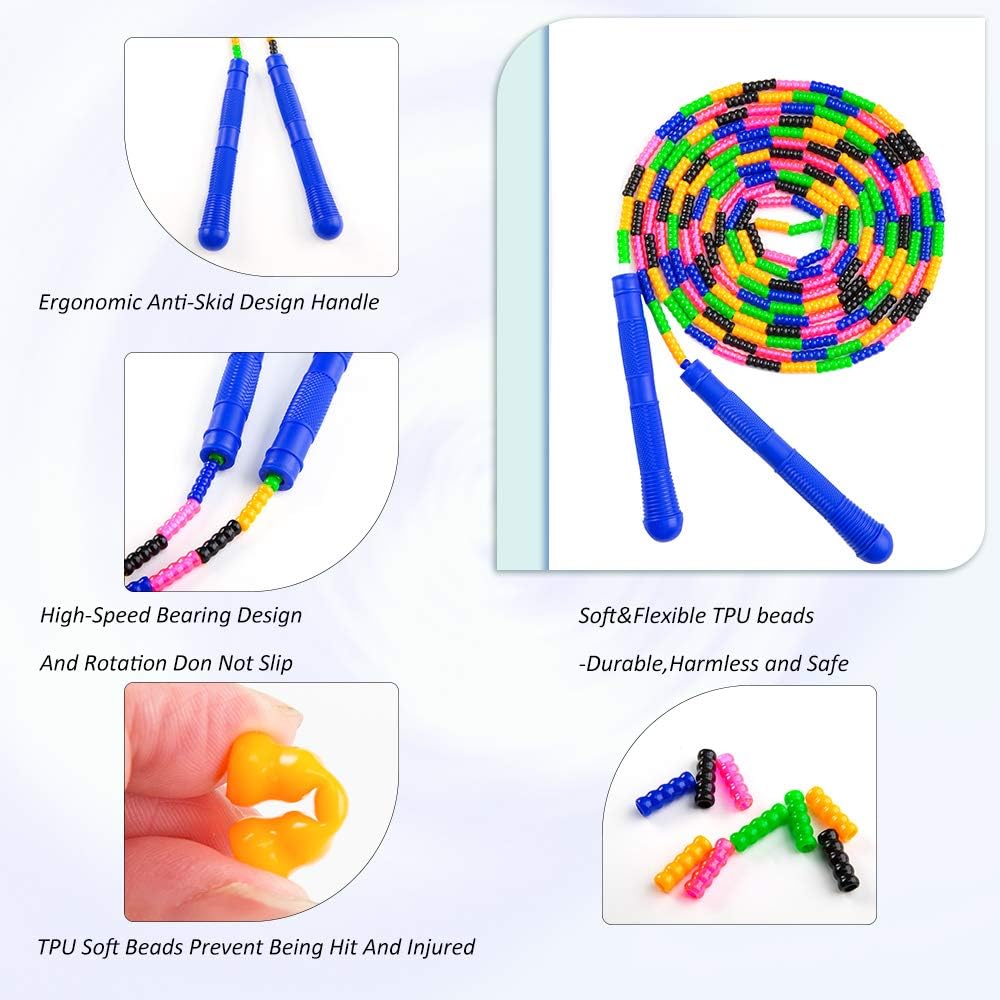 ⭐ BEADED JUMP ROPE:With soft beaded and segmentation design, material skipping rope is safe for kids to use.
