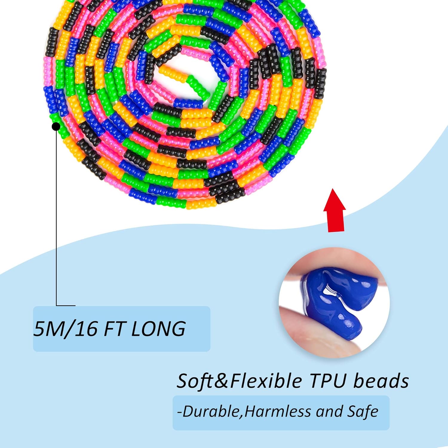 ⭐ BRIGHT AND COLORFUL:The beaded jump rope is bright and colorful, kids will love it!