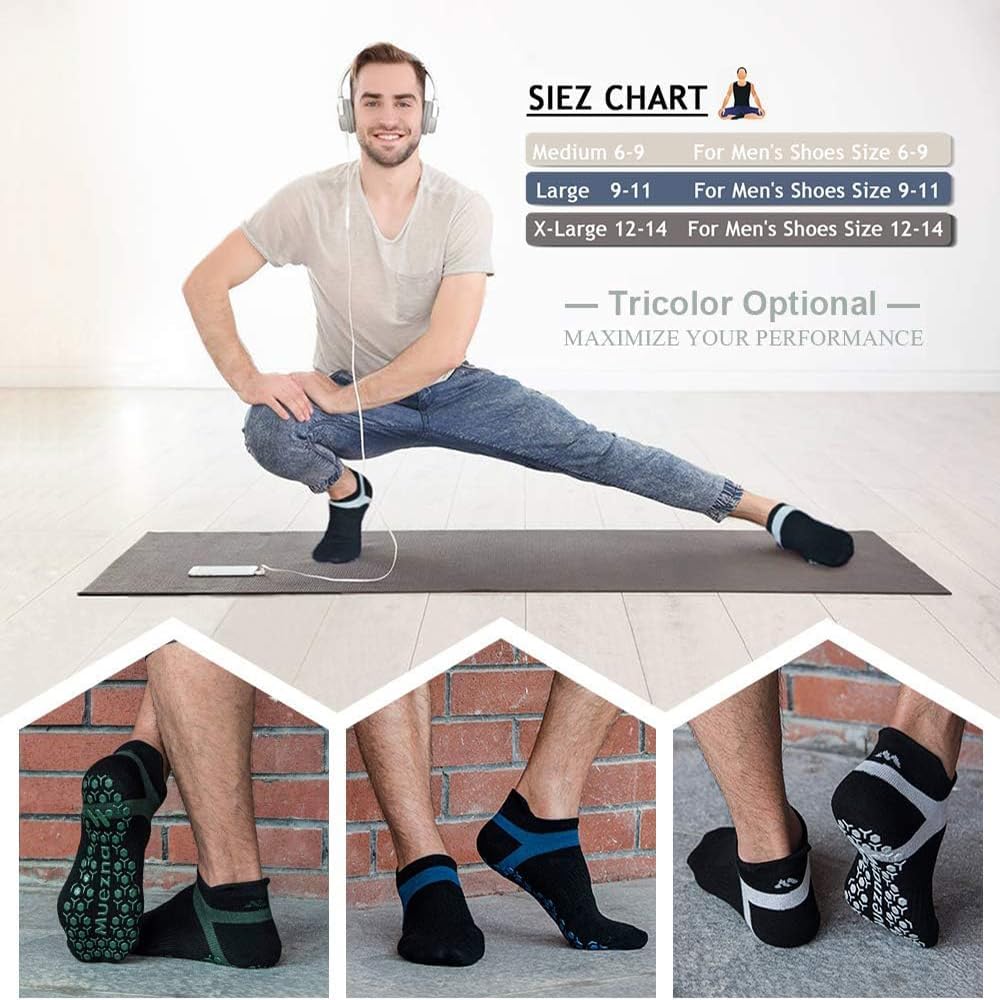 Muezna Men’s Non-Slip Yoga Socks, Anti-Skid Pilates, Barre, Bikram Fitness Hospital Slipper Socks with Grips