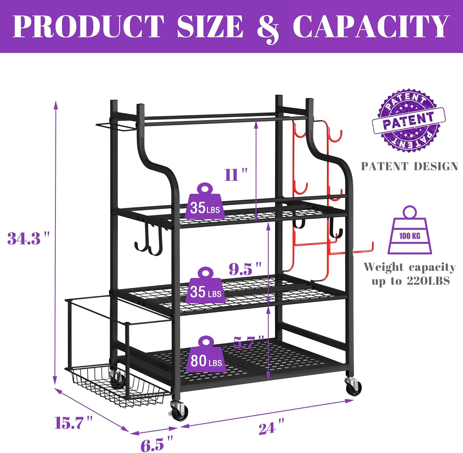 【HEAVY DUTY CASTERS】: The home gym storage rack comes with 4 strong 360-degree wheels (2 lockable) and can easy to move indoor and outdoor as well as any places you want to use.