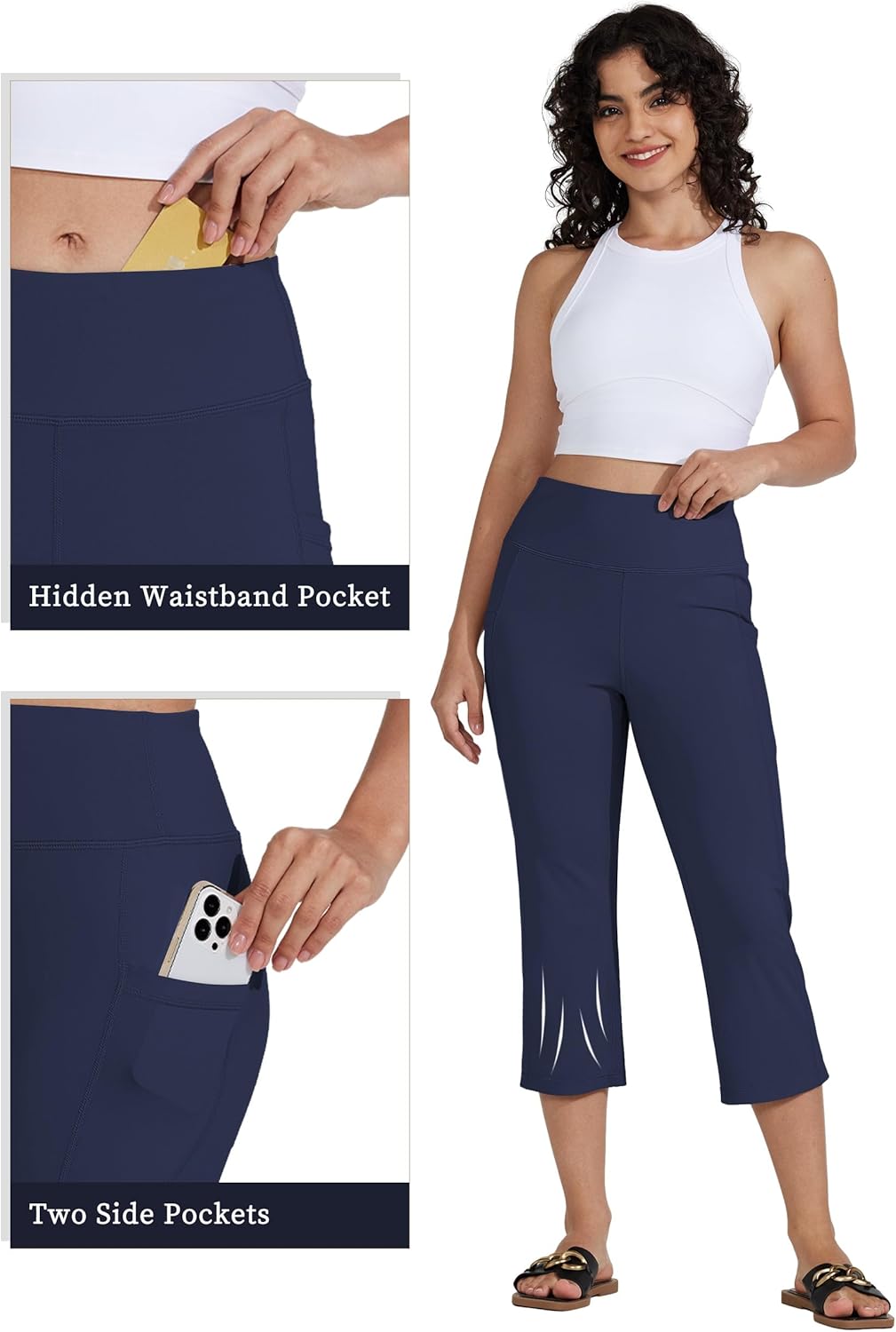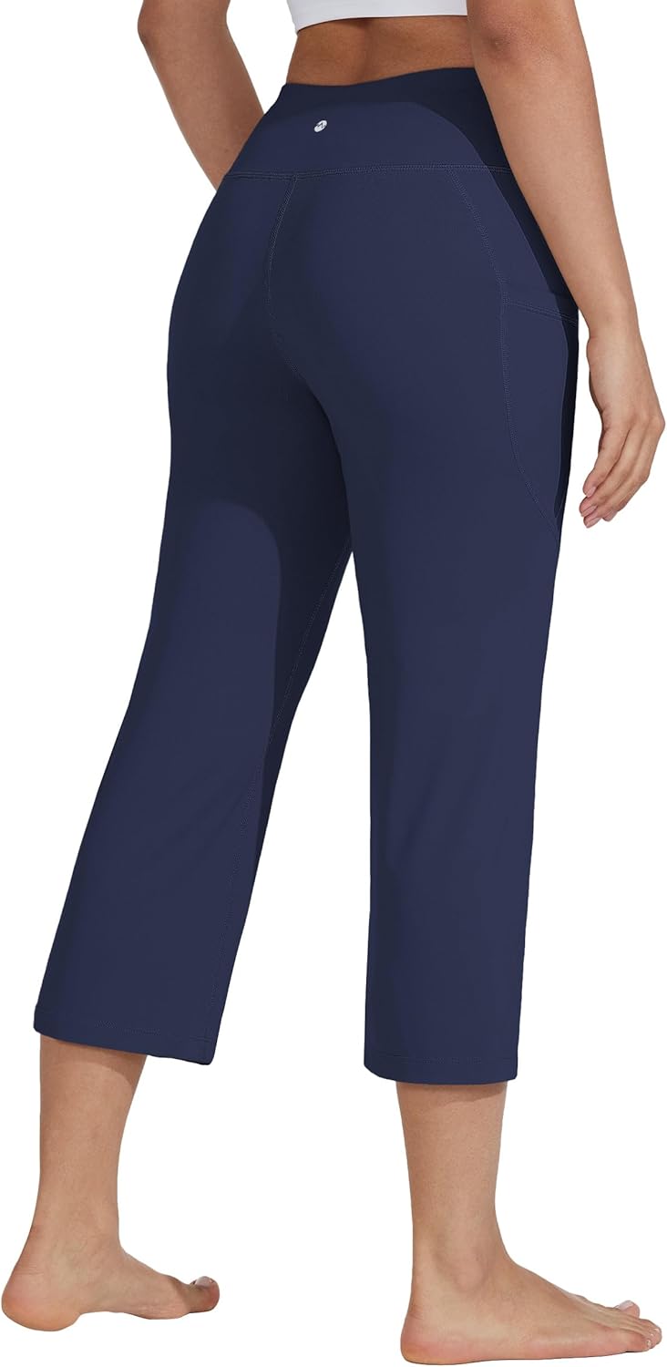 Willit Women’s Yoga Capris Pants High Waist Leggings Crop Straight Leg Athletic Exercise Workout Capris 21″