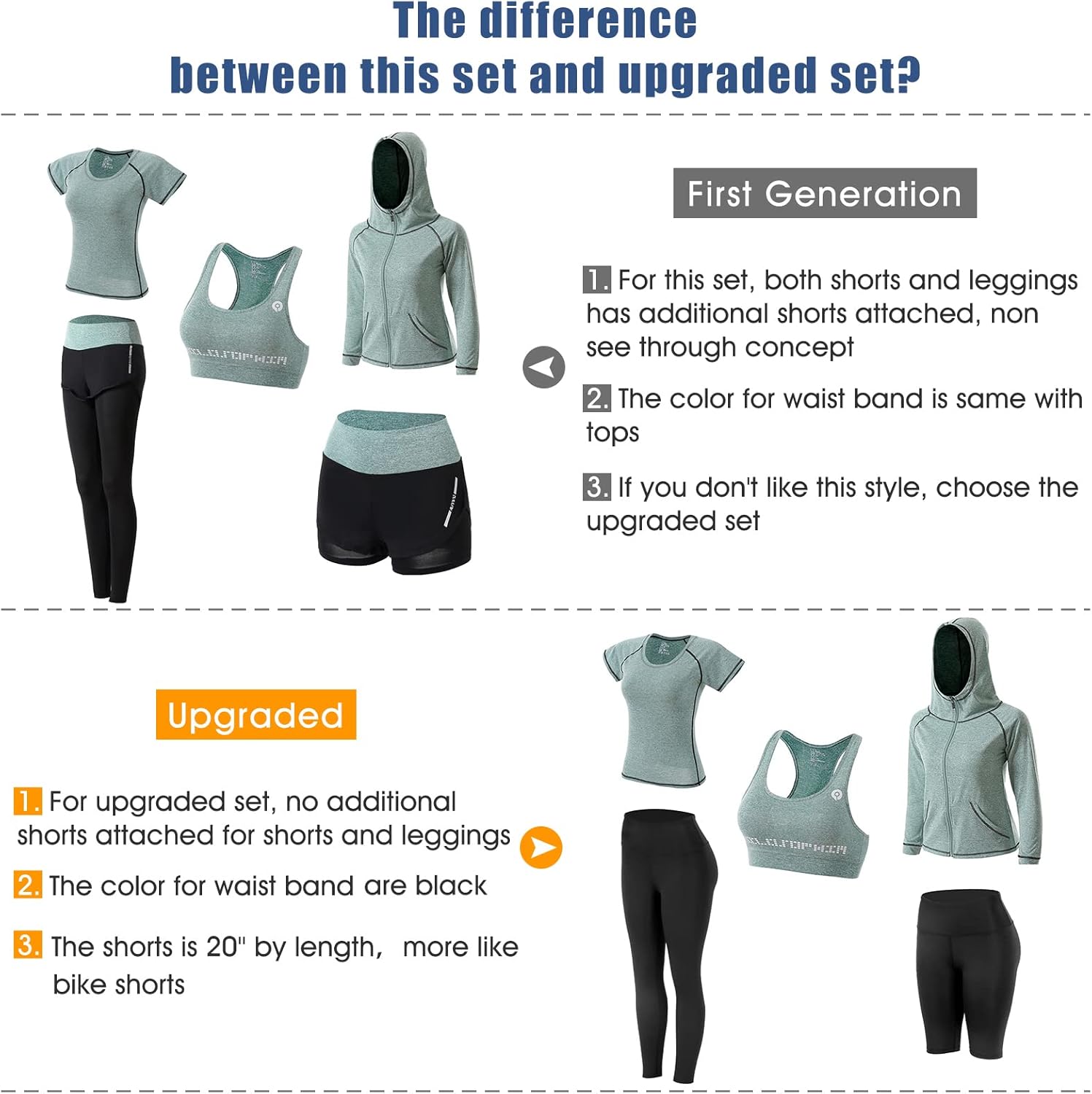 Women Workout Clothes Set 5 PCS Exercise Athletic Outfits Set